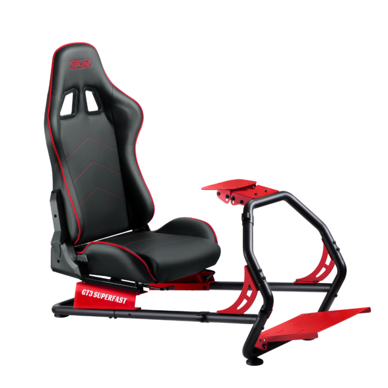 Le GT3 Superfast est un simulateur de conduite Type GT/Rally conçu pour une première approche du SimRacing. Constitué d’un châssis tubulaire de 35mm de diamètre rigide et design, il peut recevoir un support écran et un support boite de vitesse, en option.