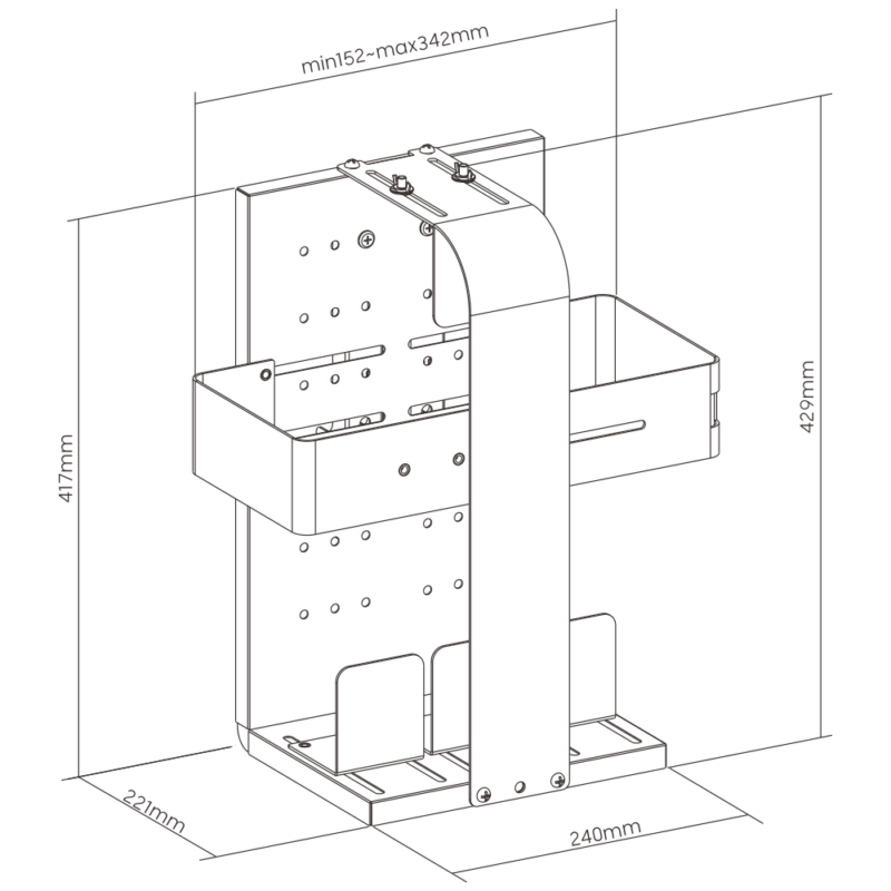 Fixé a l’aide de 2 équerres en acier carbone de 2mm à votre support écran, l’ensemble ne forme plus qu’un