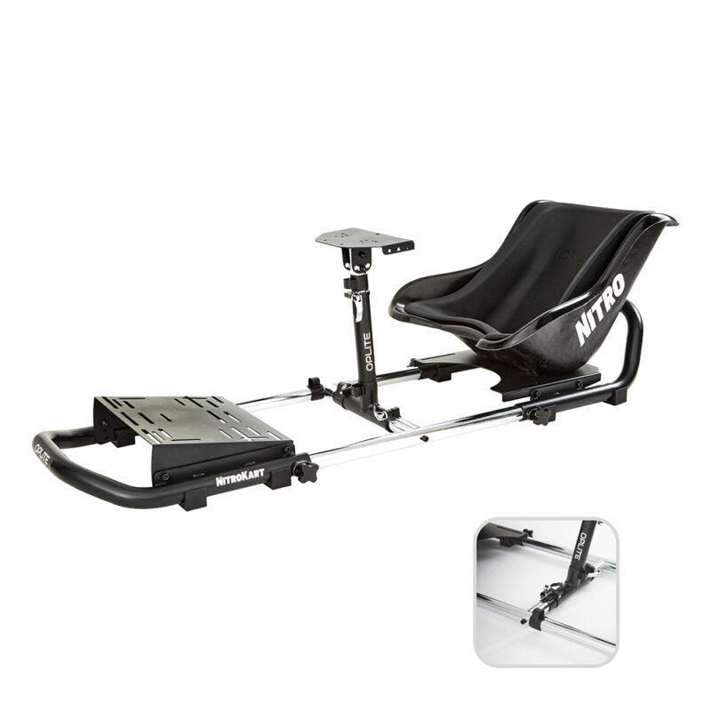 Équipé d’un siège de kart professionnel en fibre de verre à fond plat, le NitroKart est conçu pour une utilisation intensive grâce à des matériaux de qualité issus de la compétition Karting réelle. Il offre une rigidité exemplaire permettant notamment l’utilisation d’un combo volant Direct Drive et pédalier LoadCell. 100% Compatible avec les volants et pédales des marques Thrustmaster®, Logitech®, Fanatec®, MOZA®, et Hori®, le NitroKart® accompagnera toute la famille dans l’apprentissage de la conduite sportive, en permettant de recevoir des volants et pédales pour pilote Débutant, Confirmé et Professionnel.