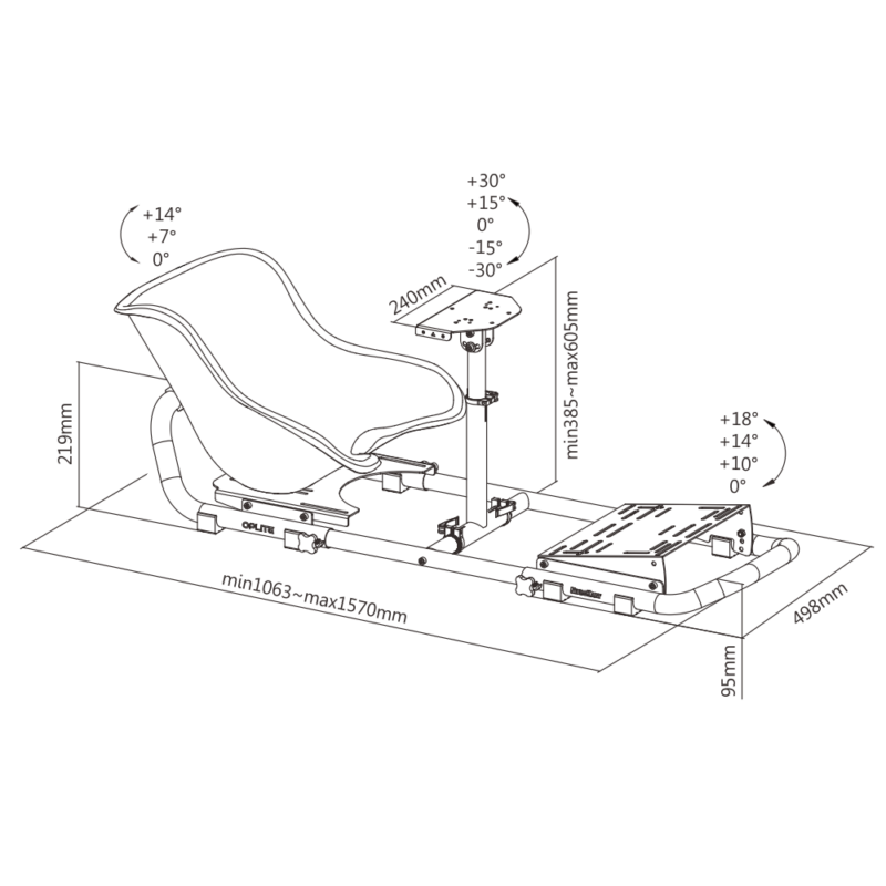 Support baquet de 3mm d’épaisseur offrant 3 positions d’inclinaison 0°/+7°/+14°