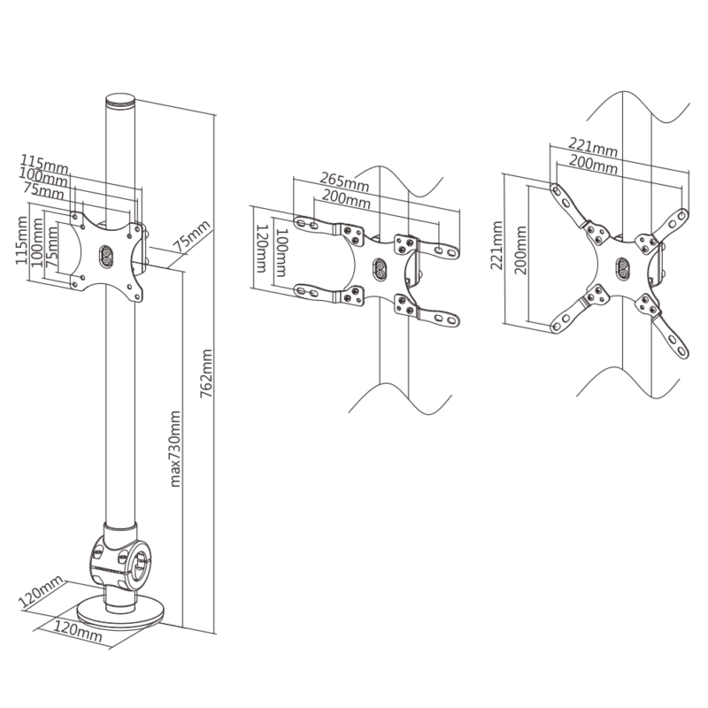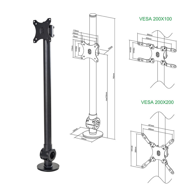 Fixation écran à la norme VESA sur 4 entraxes : VESA 75×75 – 100×100 – 100×200 – 200×200