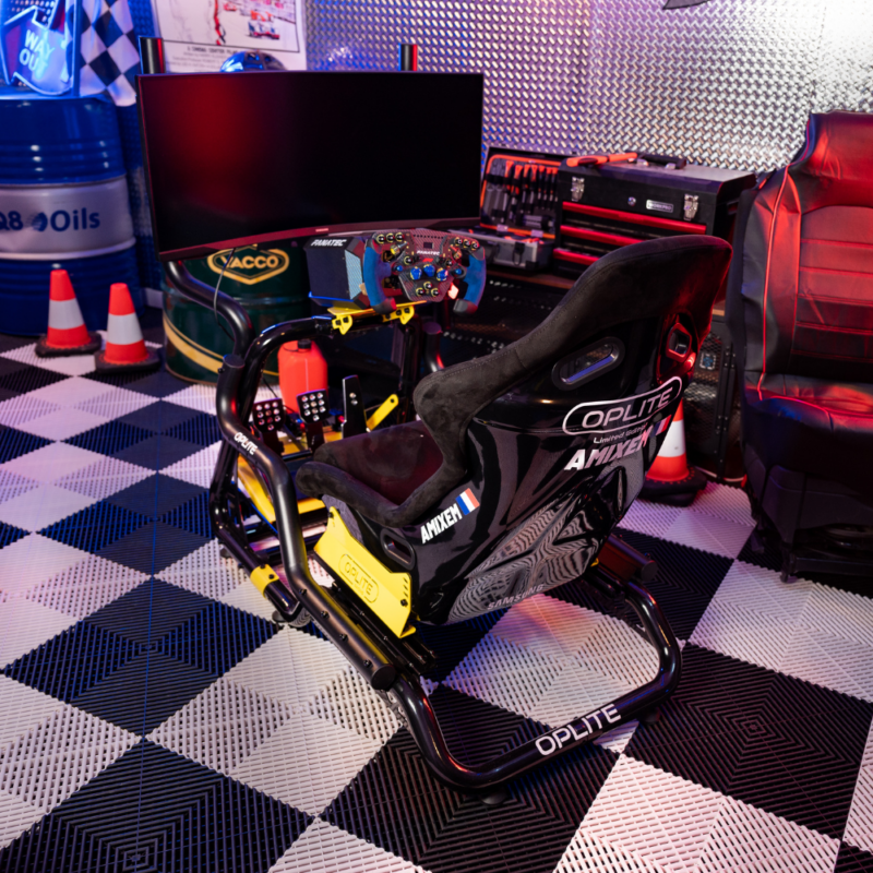 Le cockpit OPLITE GTR S3 Élite Yellow est la dernière plateforme de simulation de la marque OPLITE. Son design soigné inspiré de la compétition automobile offre une position de conduite ergonomique et confortable. Rigide et compact, le châssis tubulaire en acier de Ø 48mm de diamètre est conçu pour recevoir de nombreux accessoires pour la simulation automobile (SimRacing) et la simulation de vol (FlightSim). Le GTR S3 est compatible avec toutes les solutions Fanatec, Thrustmaster, MOZA et Logitech.