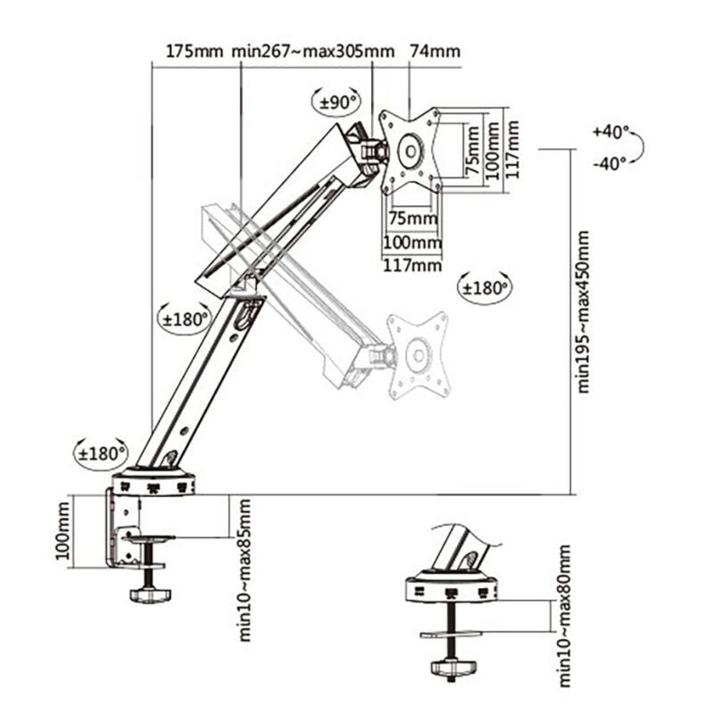 Jauge de tension des ressorts accessible pour un réglage parfait du poids en fonction du poids de vos écrans.