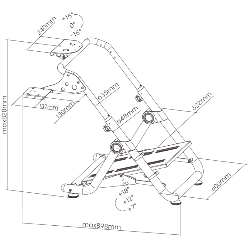 • Amplitude d’inclinaison de la plaque de pédale : 7°/12°/18°